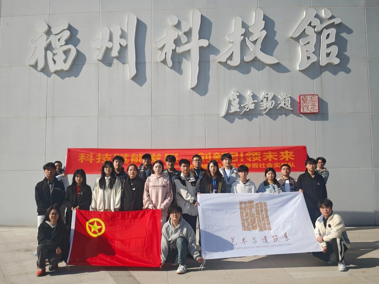 为深入学习贯彻习近平新时代中国特色社会主义思想,积极响应习总书记提出的关于科技创新的重要论述,激发同学们对科技创新的热情,2025年1月24日,艺术与建筑系团总支社会实践队在团总支书记林鸿燕的带领下来到了新建成的福州科技馆,开启了一场主题为“科技赋能发展,创新引领未来”的科技探索之旅。