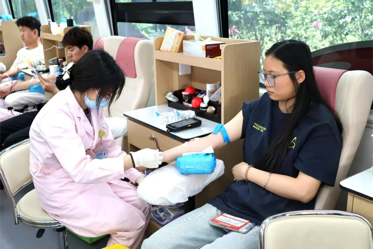 志愿者团队精心布置现场功能区,设置能量补给站,规划爱心留观区。活动当日,献血现场洋溢着温馨的氛围,参与师生在志愿者引导下依次完成扫码登记、健康征询与体检初筛,有序登上采血车完成爱心传递。