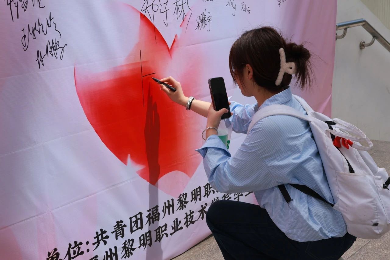 采血过程中,医护人员全程进行专业指导,细致解答健康咨询。献血活动结束后,学生们在献血签名墙上签下名字,并获得精美纪念品。