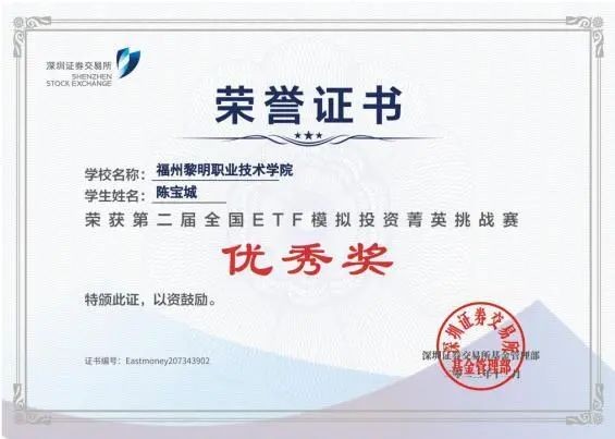 1.第二届ETF模拟投资菁英挑战赛优秀奖;