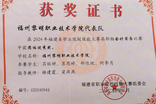 5.福建省职业院校技能大赛“会计实务”团体优秀奖;