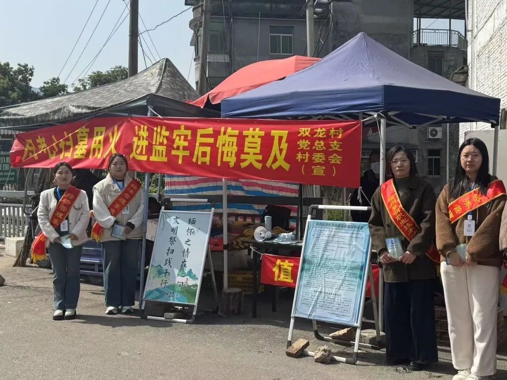 由教师党员与学生志愿者共同组建的宣传先锋队,深入双龙村,向当地群众发放一份份涵盖“清明节防火注意事项”以及《文明祭扫倡议书》、承载着安全与文明期许的宣传单页。