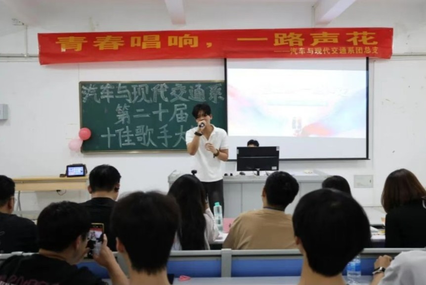 音符跃动,青春飞扬。为丰富校园文化生活,展现新时代学子昂扬向上的精神风貌,10月15日,汽车与现代交通系团总支在综合楼307教室隆重举行“青春唱响 一路声花”系部十佳歌手大赛决赛。