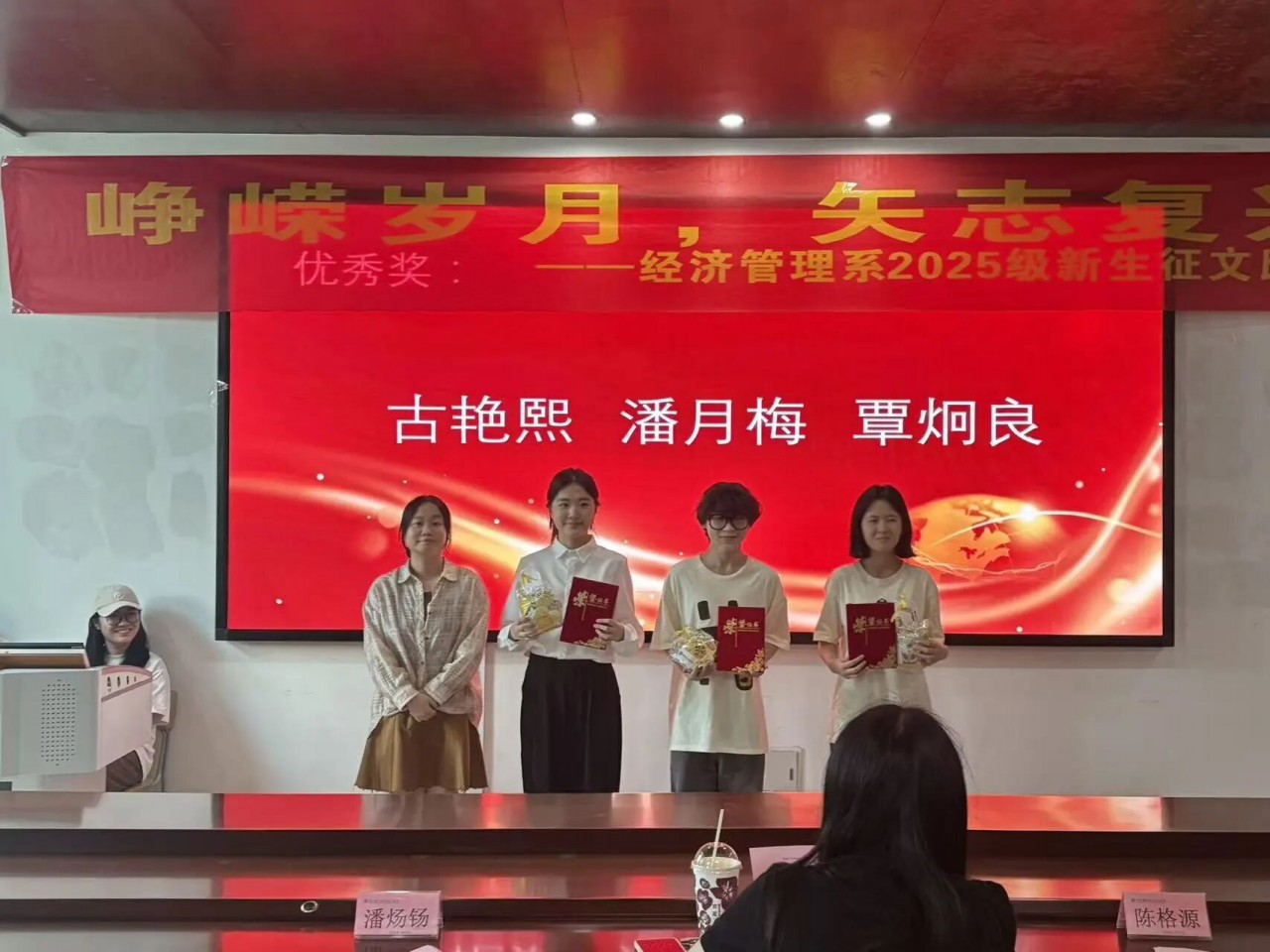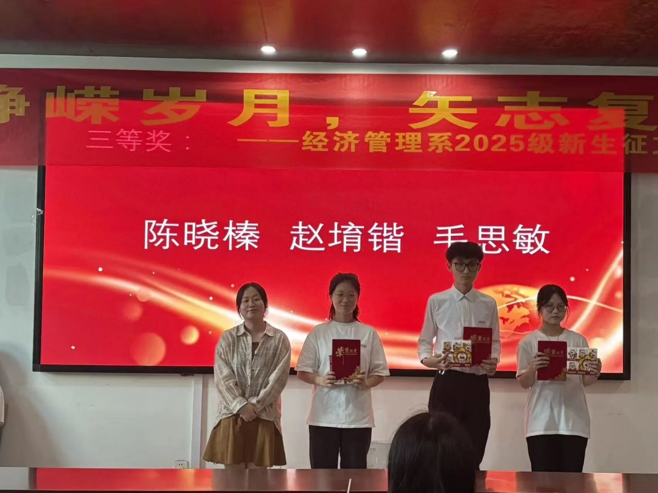 颁奖仪式简洁庄重,辅导员为获奖学生颁发证书。这份荣誉既是对优秀作品的肯定,也是对全体参与者认真投入的认可与鼓励。