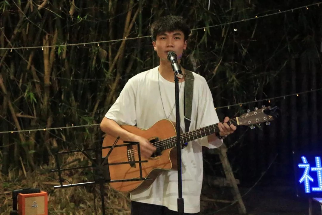 当熟悉的旋律响起,最真挚的爱国情怀在歌声中荡漾开来。吉他协会会长陈宇杰以《我和我的祖国》开场,“我和我的祖国,一刻也不能分割,我歌唱每一座高山...”这是举国欢庆的日子,黎明学子以一种喷涌而出的激情尽情抒发对祖国的祝福,表达深深的民族自豪感。
