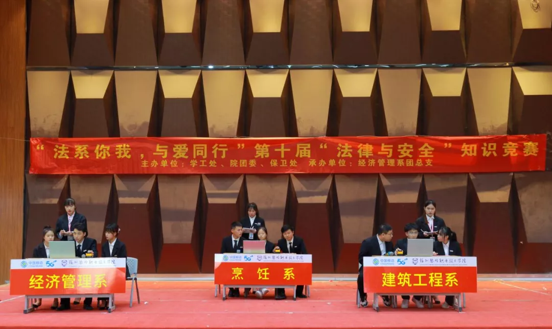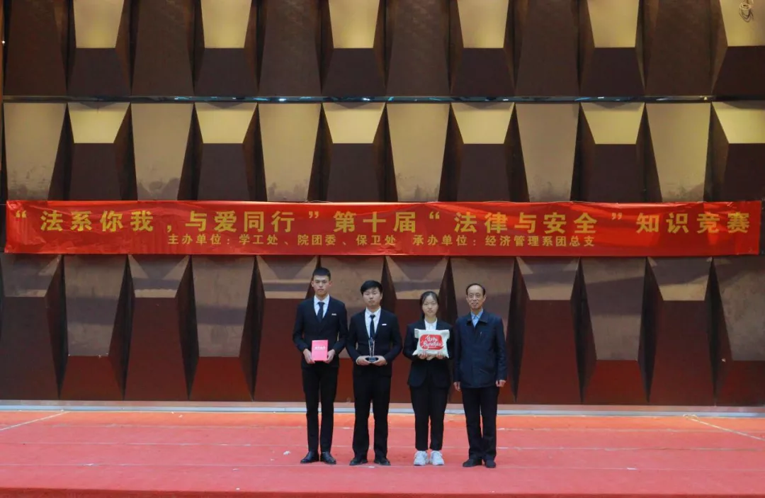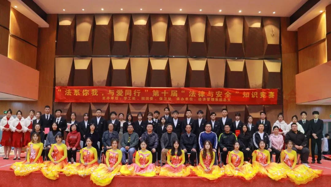 为贯彻坚定不移走中国特色社会主义法治道路的要求,坚持以习近平法治思想为指引,全面加强对大学生群体的对法律学习宣传力度,不断提升大学生法治意识与法治素养,培养忠实崇法、自觉守法、坚定护法的大学生。2021年12月9日下午14时,由学工处、团委、保卫处主办,经济管理系团总支承办的“法系你我,与爱同行”第十届“法律与安全”知识竞赛在学术报告厅举办。莅临本场比赛的领导有:院党委书记廖诗忠教授,副院长魏洪老师,院党委副书记王新华老师,出席本次比赛的还有各处室代表、党支部书记、学工处干部以及全体辅导员们。