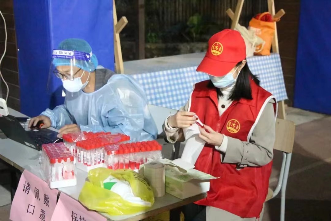 党员志愿者们坚守在核酸采样点