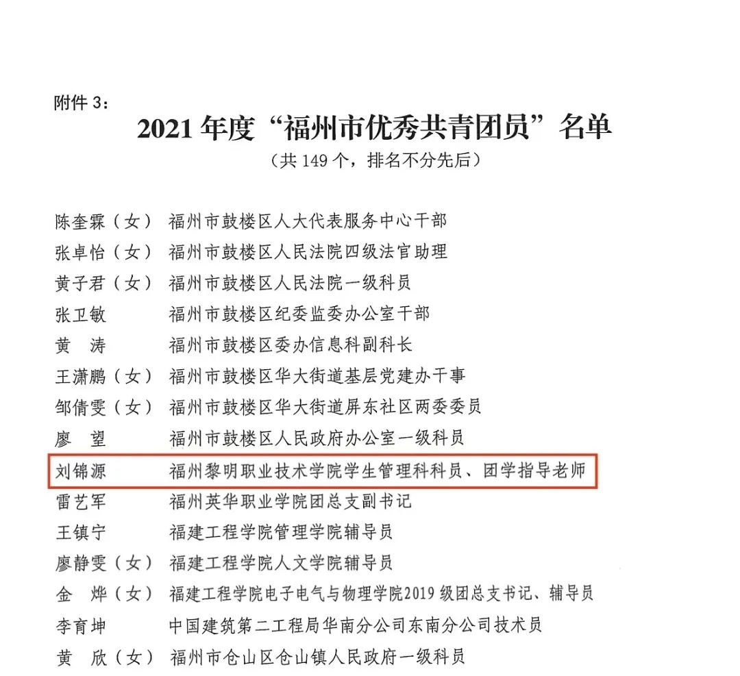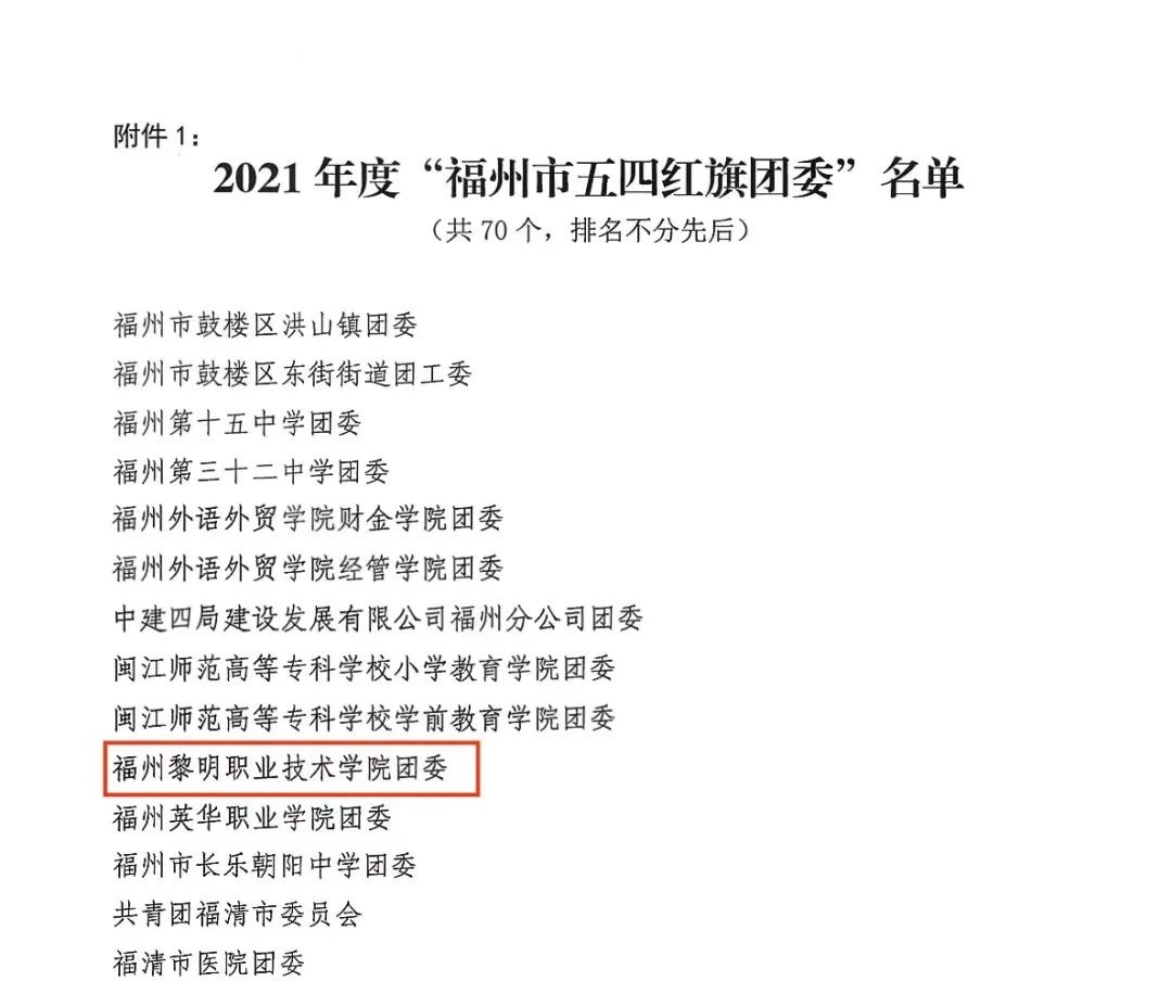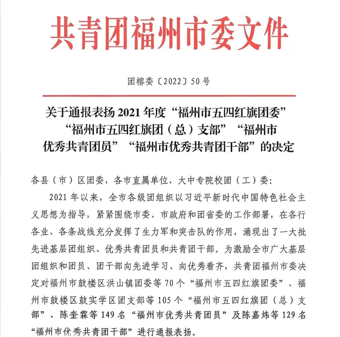 近日,2021年度“福州市五四红旗团委” “福州市五四红旗团(总)支部”“福州市优秀共青团员”“福州市优秀共青团干部”名单出炉!