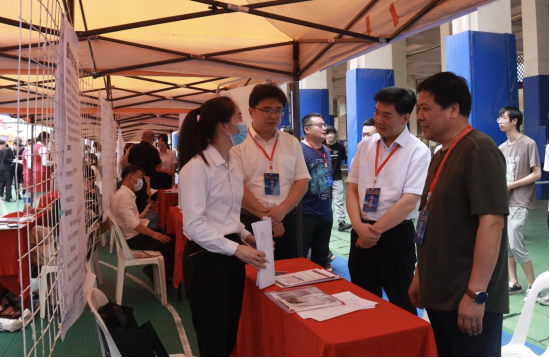 由省委统战部、团省委、省工商联、省中华职教社共同主办的“百校万岗 同心就业”2022年校园招聘会于6月20日在我校举行。省委统战部副部长肖华鑫,团省委副书记李腾,省中华职教社党组书记黄玲,省工商联有关领导,学院院长范超峰,院党委副书记王新华出席活动现场指导工作。