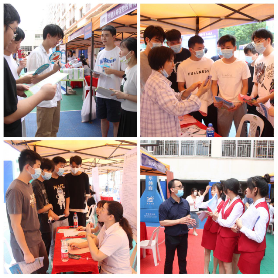 招聘会期间,领导和学生面对面沟通,询问求职期望;同时与用人单位认真交流,了解招聘需求和行业动态。