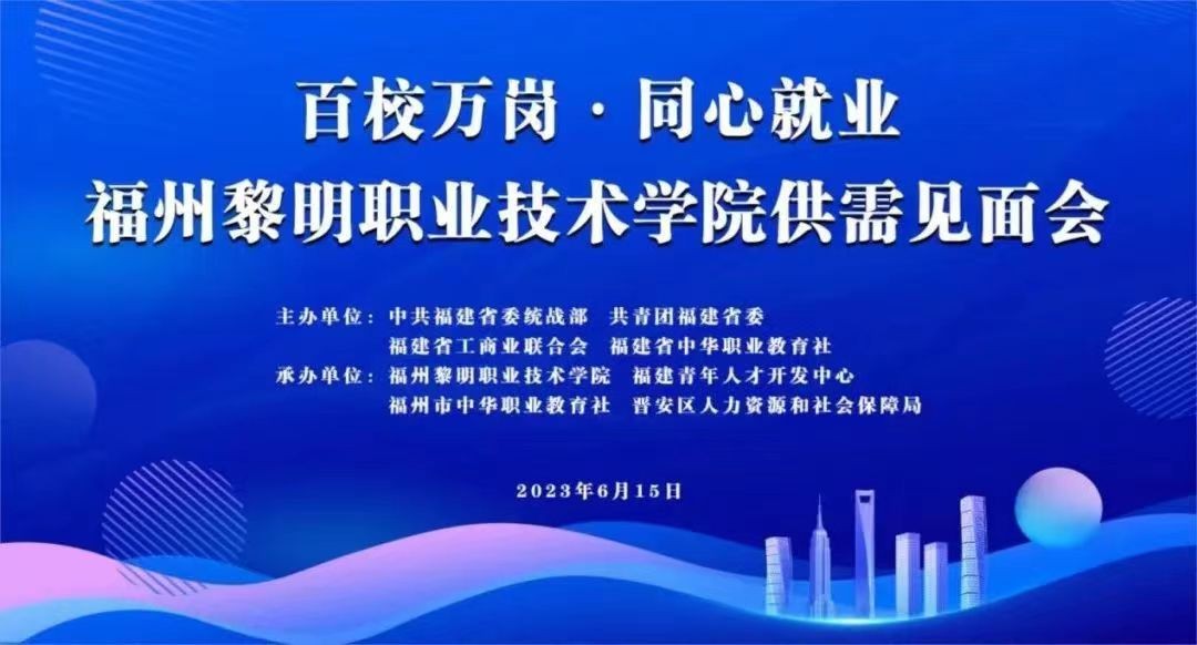 为认真贯彻落实党的二十大精神,搭建用人单位与毕业生之间的交流平台,全力促进我校毕业生更加充分更高质量就业,6月15日上午,由中共福建省委统战部、共青团福建省委、福建省工商业联合会、福建省中华职业教育社主办,福州黎明职业技术学院、福建青年人才开发中心、福州市中华职业教育社、晋安区人力资源和社会保障局承办的“百校万岗 同心就业”福州黎明职业技术学院供需见面会于学校地球村校区成功举行。福建青年人才开发中心主任潘建宇、福建省中华职教社综合业务部三级调研员阮章荣,学院党政领导王苏华、范超峰、廖诗忠等出席活动现场指导工作。