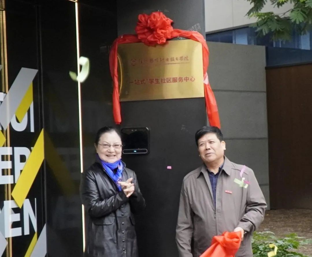 学院董事长王苏华与院长范超峰共同为“一站式”学生社区服务中心揭牌