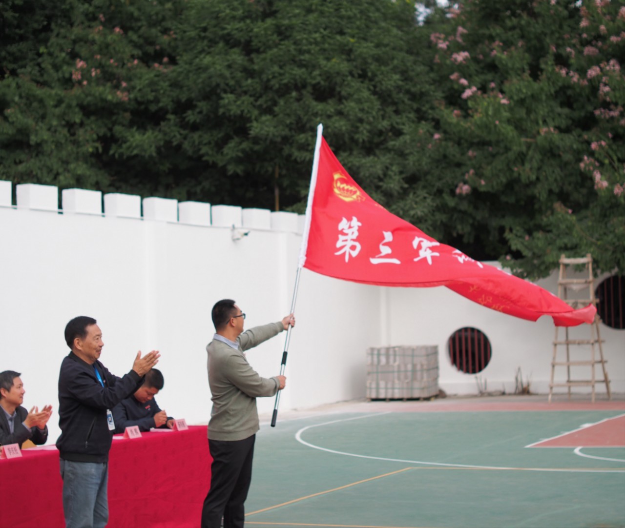 地球村校区开训仪式主席台