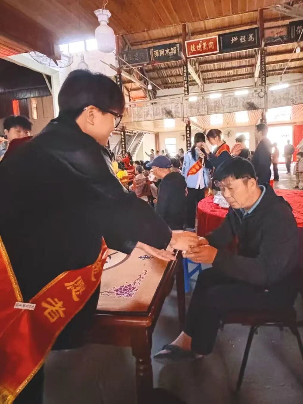 活动在“大小搭档”的温馨表演中拉开序幕。志愿者与小朋友共同表演舞蹈《送你一朵小红花》,手势舞《中华孝道》则以轻柔动作传递孝亲内涵;双龙村团队的腰鼓表演铿锵激昂,将现场氛围推向高潮,赢得阵阵掌声。