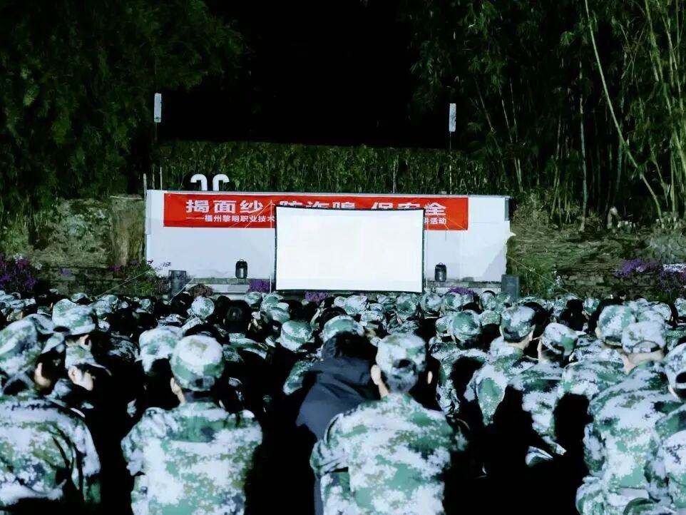 为深化爱国主义教育,丰富军训期间的文化生活,我校于2025级新生军训期间,融合“电影下乡”文化惠民活动,组织全体新生集中观看了《战火黎明》与《怒火营救》两部爱国主义题材影片。这场星空下的露天观影,以创新形式为新生们呈现了一堂沉浸式“思政大课”,实现了文化浸润与国防教育的深度融合。