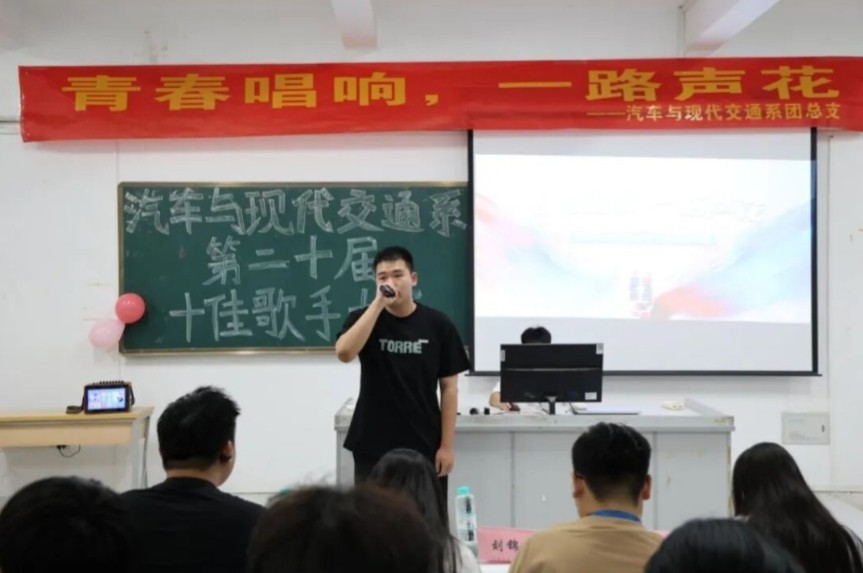 音符跃动,青春飞扬。为丰富校园文化生活,展现新时代学子昂扬向上的精神风貌,10月15日,汽车与现代交通系团总支在综合楼307教室隆重举行“青春唱响 一路声花”系部十佳歌手大赛决赛。