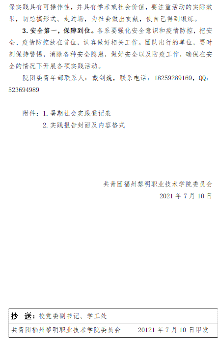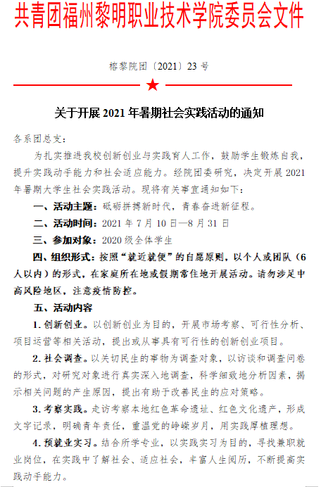 榕黎院团〔2021〕23 号——关于开展2021年暑假社会实践活动的通知