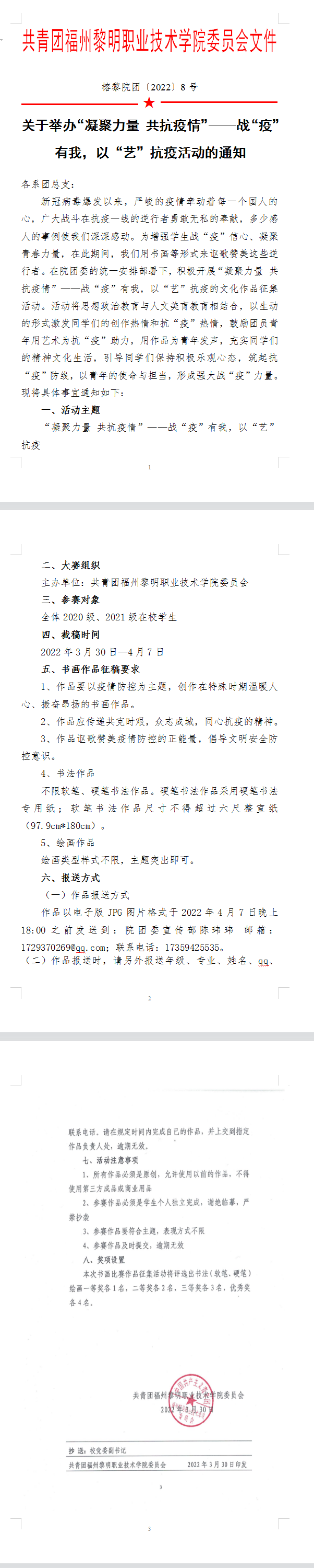 榕黎院团〔2022〕8号——关于举办“凝聚力量 共抗疫情”——战“疫”有我,以“艺”抗疫活动的通知.doc