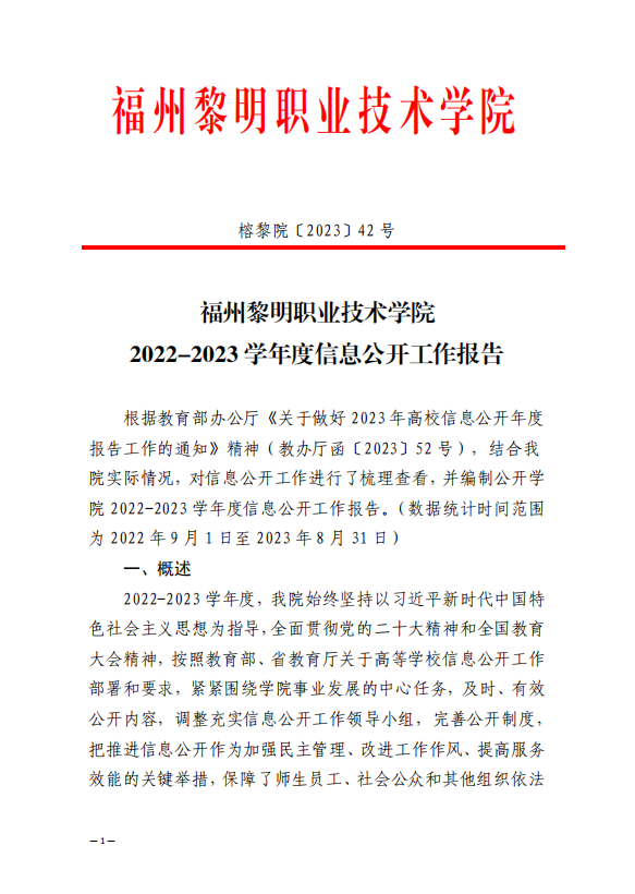 福州黎明职业技术学院2022-2023学年度信息公开工作报告