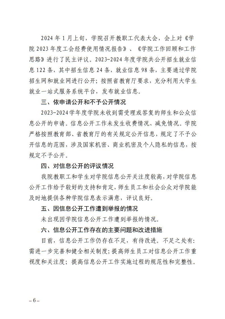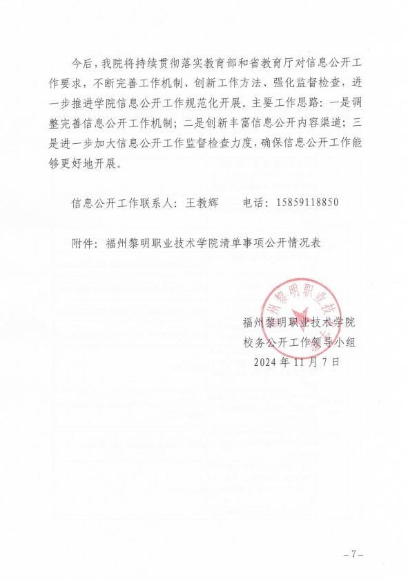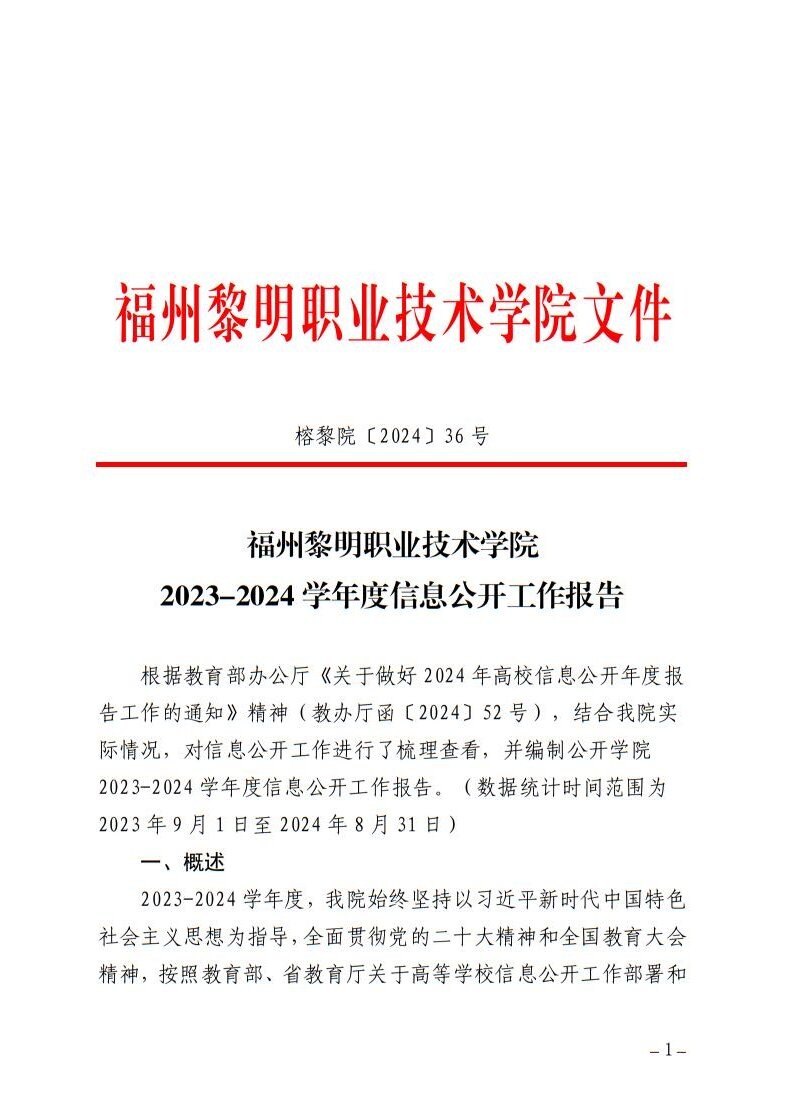 福州黎明职业技术学院2023-2024学年度信息公开工作报告