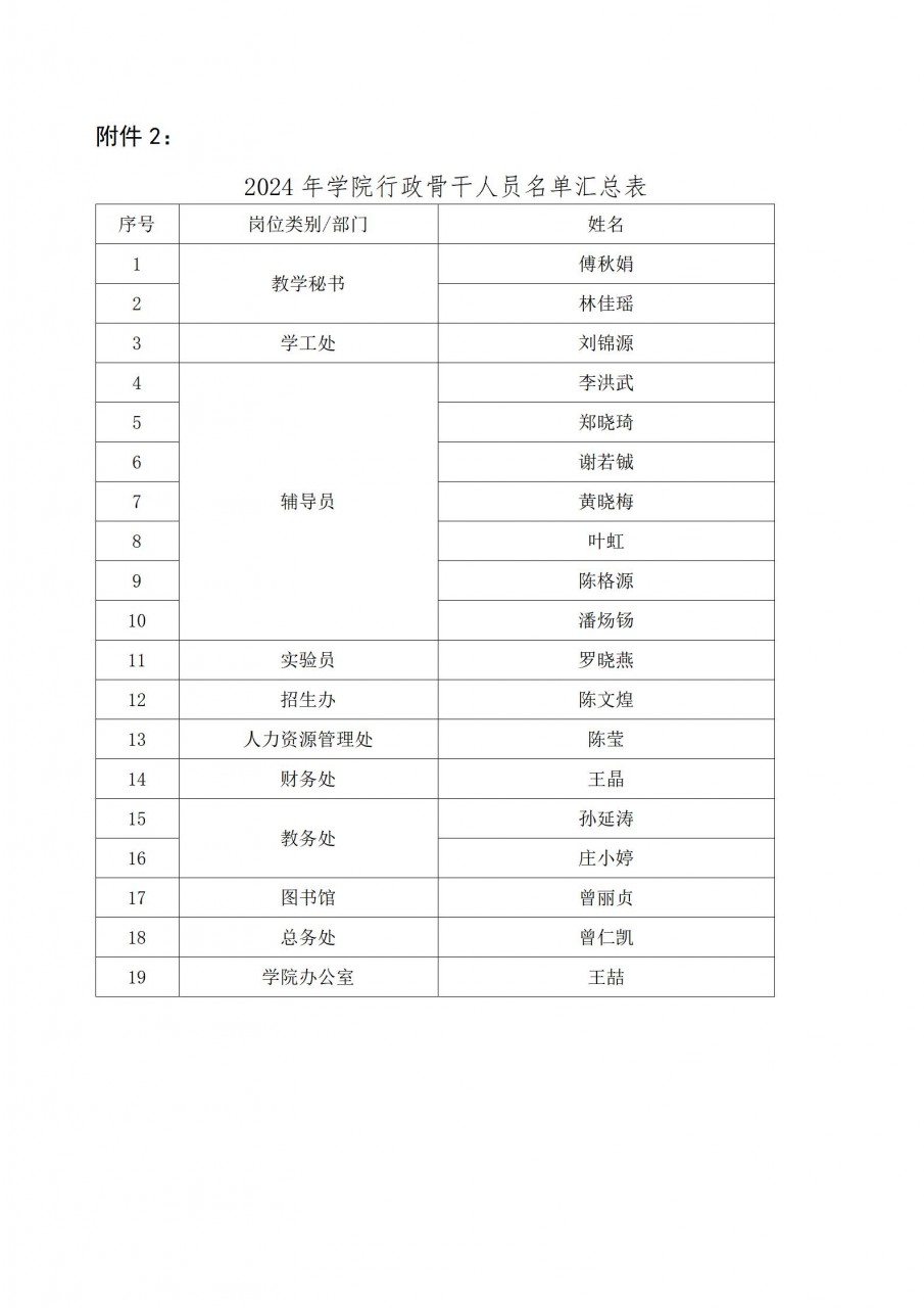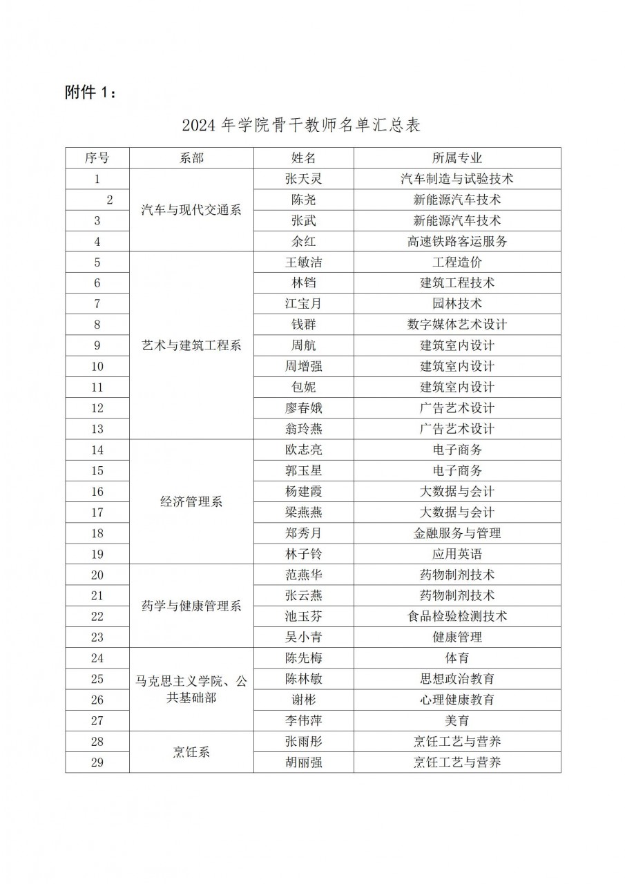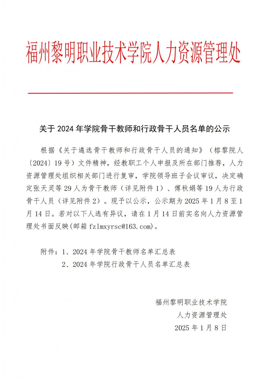 关于2024年学院骨干教师和行政骨干人员名单的公示