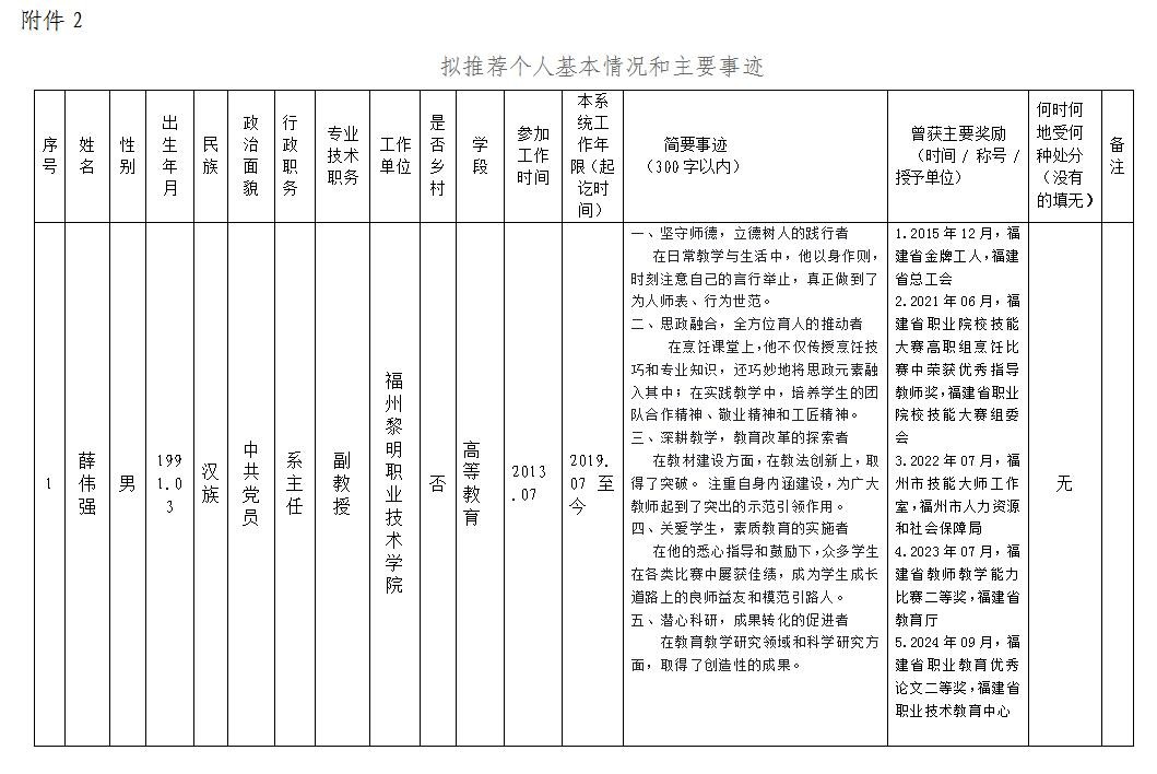 根据《福州市教育局 福州市人力资源和社会保障局关于开展福州市教育系统先进集体和先进个人评选表彰的通知》(榕教综〔2025〕40号)有关要求,经学院研究,拟推荐评选名单为: