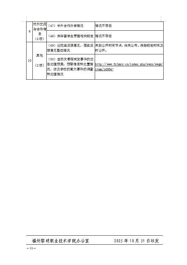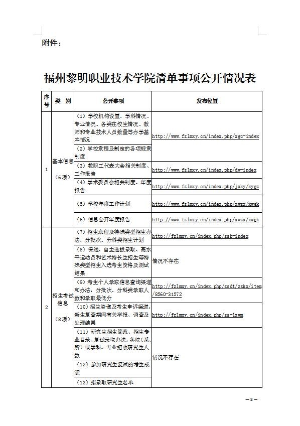 附件:福州黎明职业技术学院清单事项公开情况表