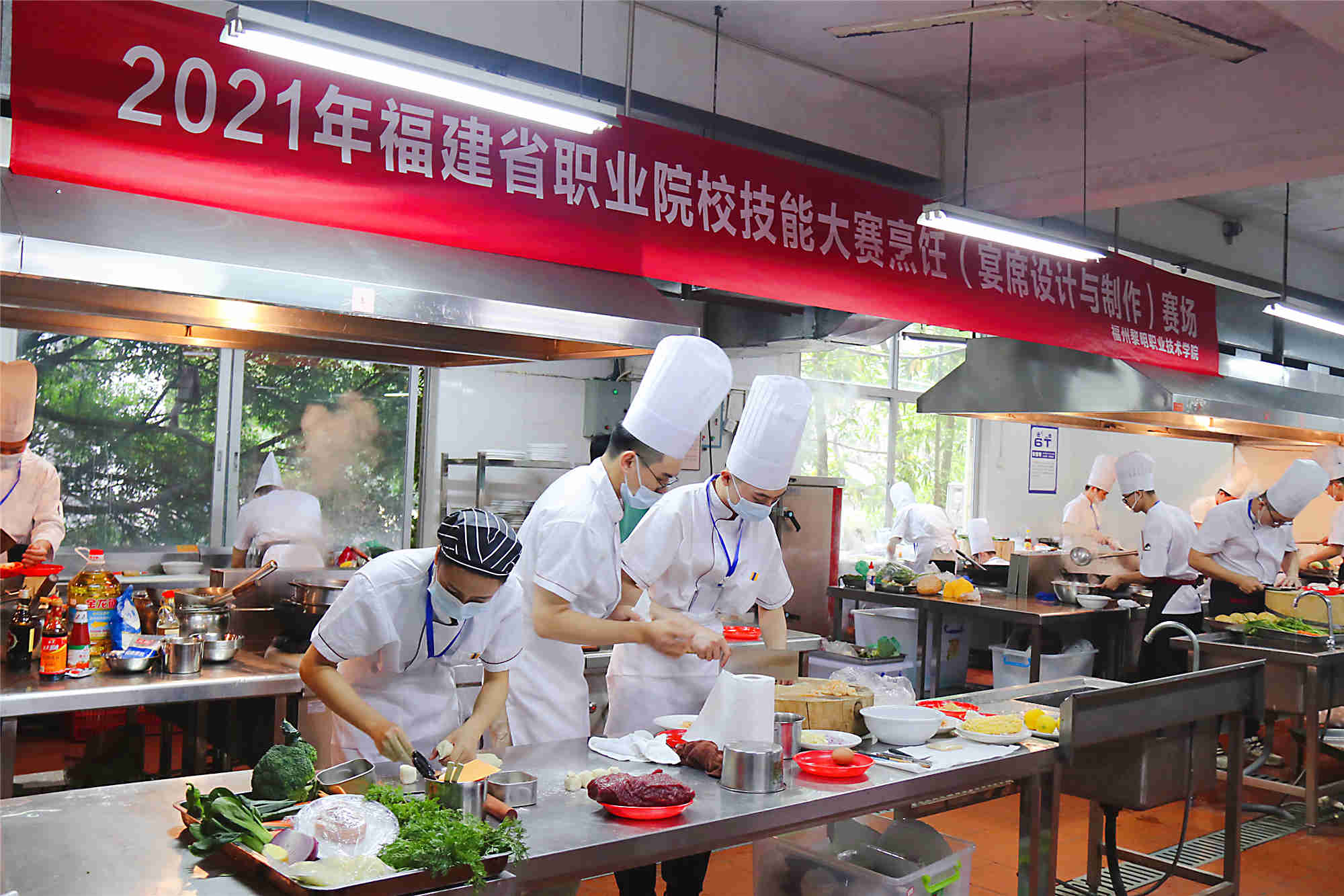 飘香四月迎盛会,精英云集添华彩。4月27日,2021年福建省职业院校技能大赛烹饪赛项(高职组)在我院福屿校区顺利举行。本次大赛由福建省教育厅、福建省人力资源和社会保障厅、福建省财政厅、福建省农业农村厅、福建省卫生健康委员会、福建省总工会、共青团福建省委、福建省中华职业教育社主办,我院承办。