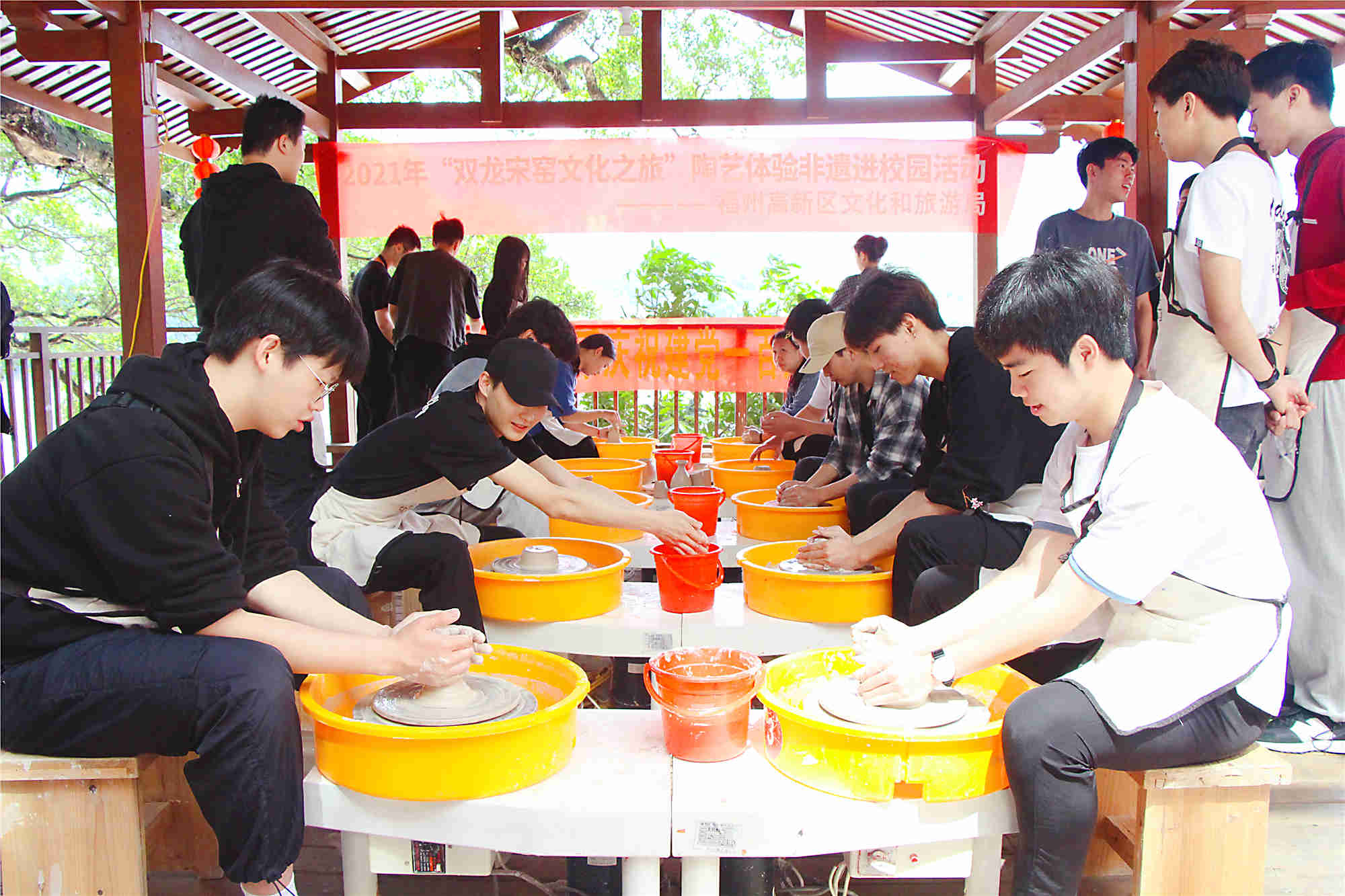非物质文化遗产由人类以口头或动作方式相传,具有民族历史积淀和广泛、突出代表性的民间文化遗产,它曾被誉为历史文化的“活化石”“民族记忆的背影”。“双龙宋窑文化之旅”陶艺体验非遗进校园活动由福州高新区文化和旅游局主办,南屿镇、南屿文化服务中心承办,桃冶艺市和我院建筑工程系协办。活动现场,陶艺老师们为学生们演示了技艺精湛的绝活,耐心地解答了学生们提出的问题,并指导学生们进行动手体验,现场气氛十分活跃。