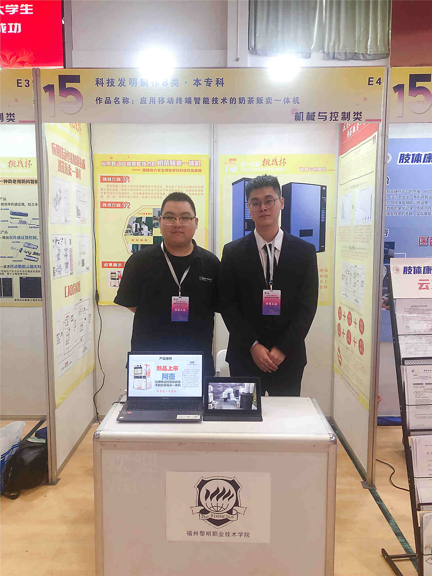 2021年“挑战杯”福建省大学生课外学术科技作品竞赛由共青团福建省委、福建省科学技术协会、福建省教育厅、福建社会科学院、福建省学生联合会共同主办,我院高度重视,积极组织,广泛发动师生踊跃参赛。建筑工程系谢若铖老师指导的《应用移动终端智能技术的奶茶贩卖一体机》在全省55所高校,1337件的参赛作品中脱颖而出,进入决赛。在学院领导的关心支持,学工处、团委、指导老师及参赛选手团队的共同努力下,我院选送的项目荣获二等奖。据悉,全省民办高职院校仅有我院一个项目进现场决赛。
