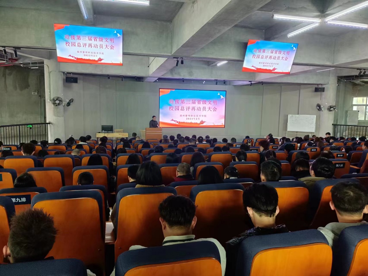 2月16日下午,学院召开迎接第三届省级文明校园总评工作再动员大会。党政班子领导、全体教职员工及部分学生干部代表参加会议。会议由院长范超峰主持。