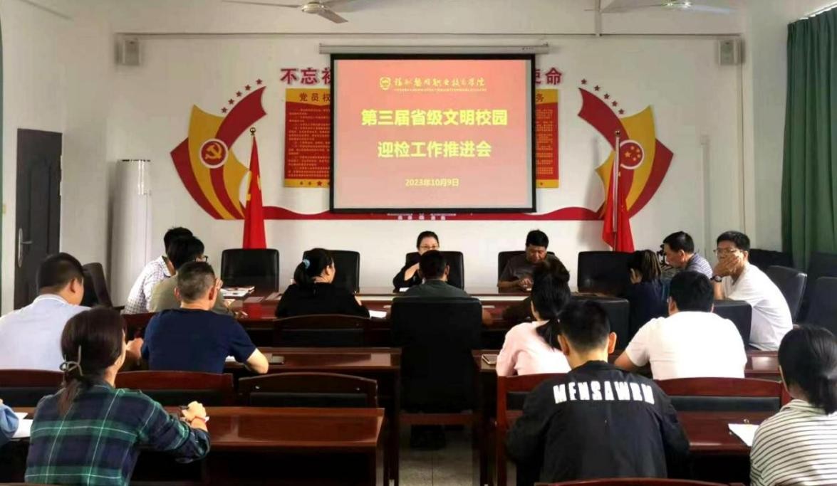 10月9日上午,学院在五楼会议室召开第三届省级文明校园迎检工作推进会。董事长王苏华、院长范超峰、党委书记廖诗忠等党政领导及各行政部门、系(部)负责人、各总支(支部)书记出席会议。会议由董事长助理、宣传部部长陈玉池主持。