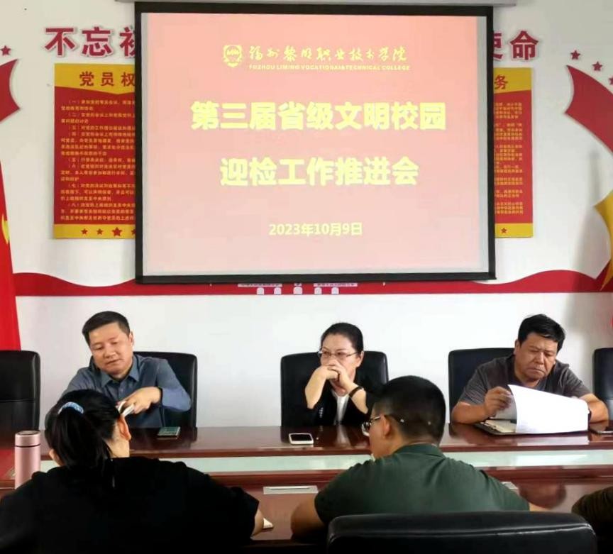 会上,陈玉池部长传达了关于第三届文明校园创建迎检工作的有关安排,通报了学院文明校园创建迎检的前期材料准备情况,指出了存在的问题和不足,并对下一步工作做出安排部署。