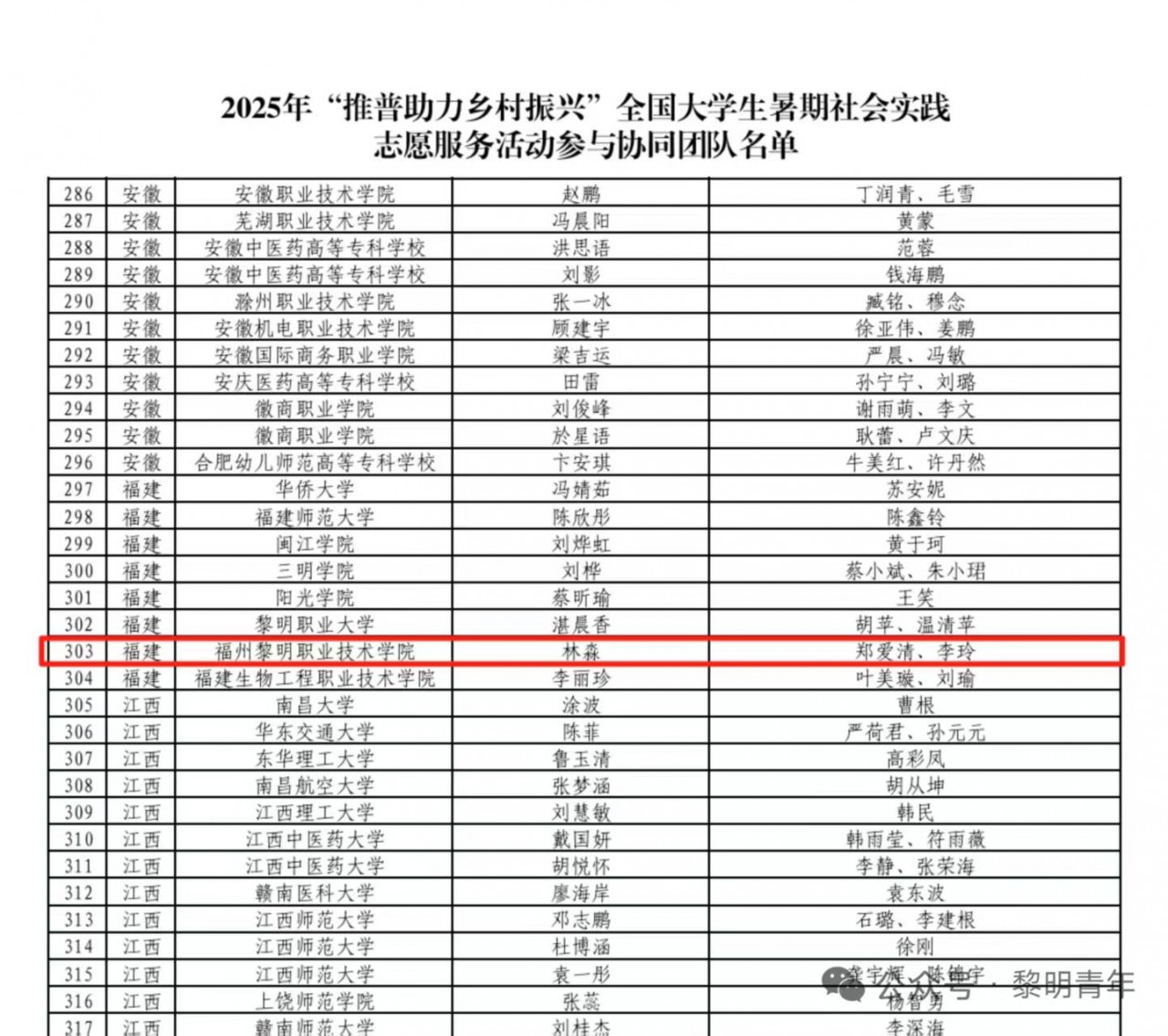 近日,教育部语言文字应用管理司与共青团中央青年发展部联合公布了2025年“推普助力乡村振兴”全国大学生暑期社会实践志愿服务活动入选团队名单。我院药学与健康管理系“药心筑梦泰宁,普语赋能振兴”团队经审议,从全国1680所高校的8013支团队中脱颖而出,成功入选。