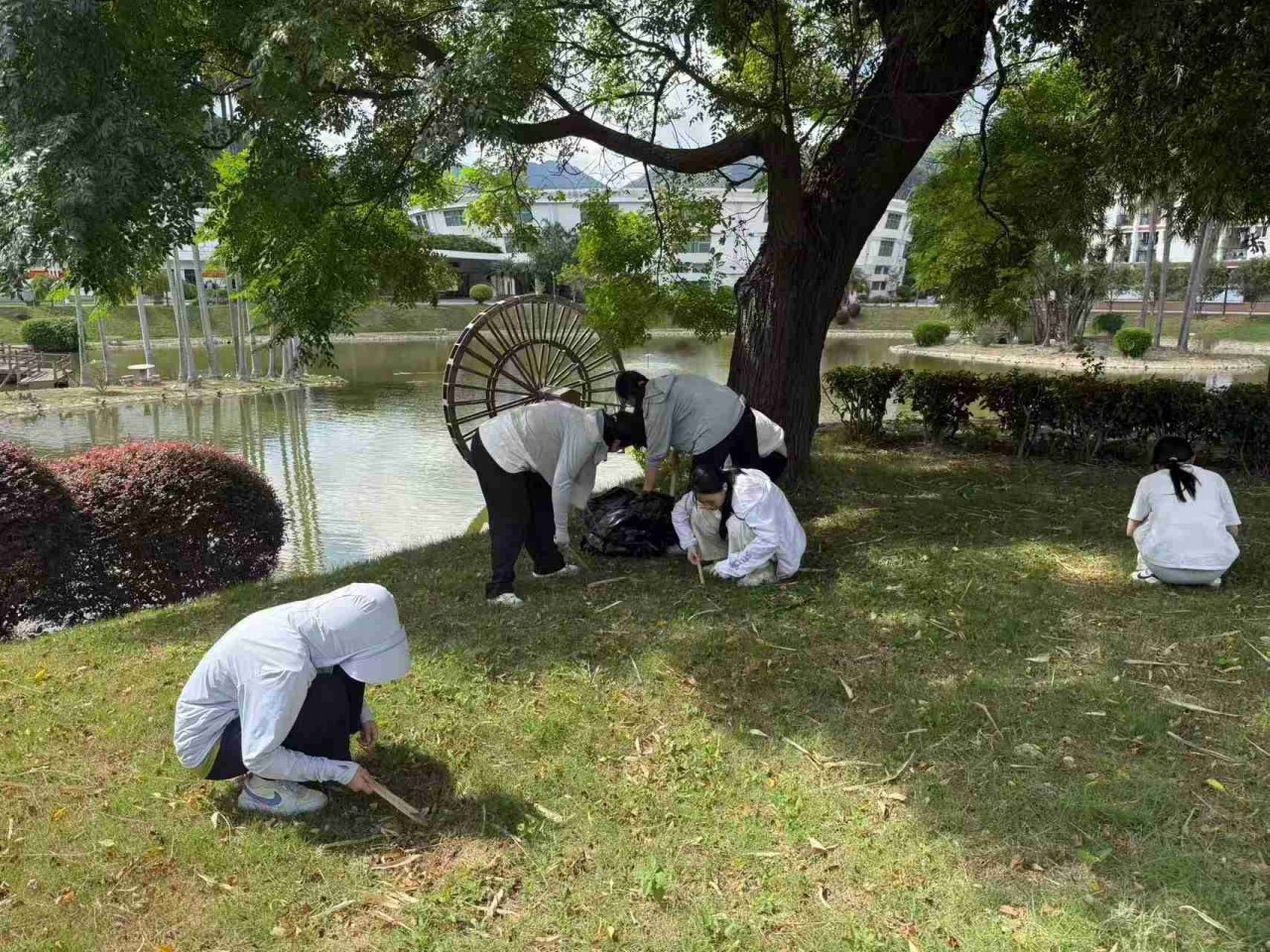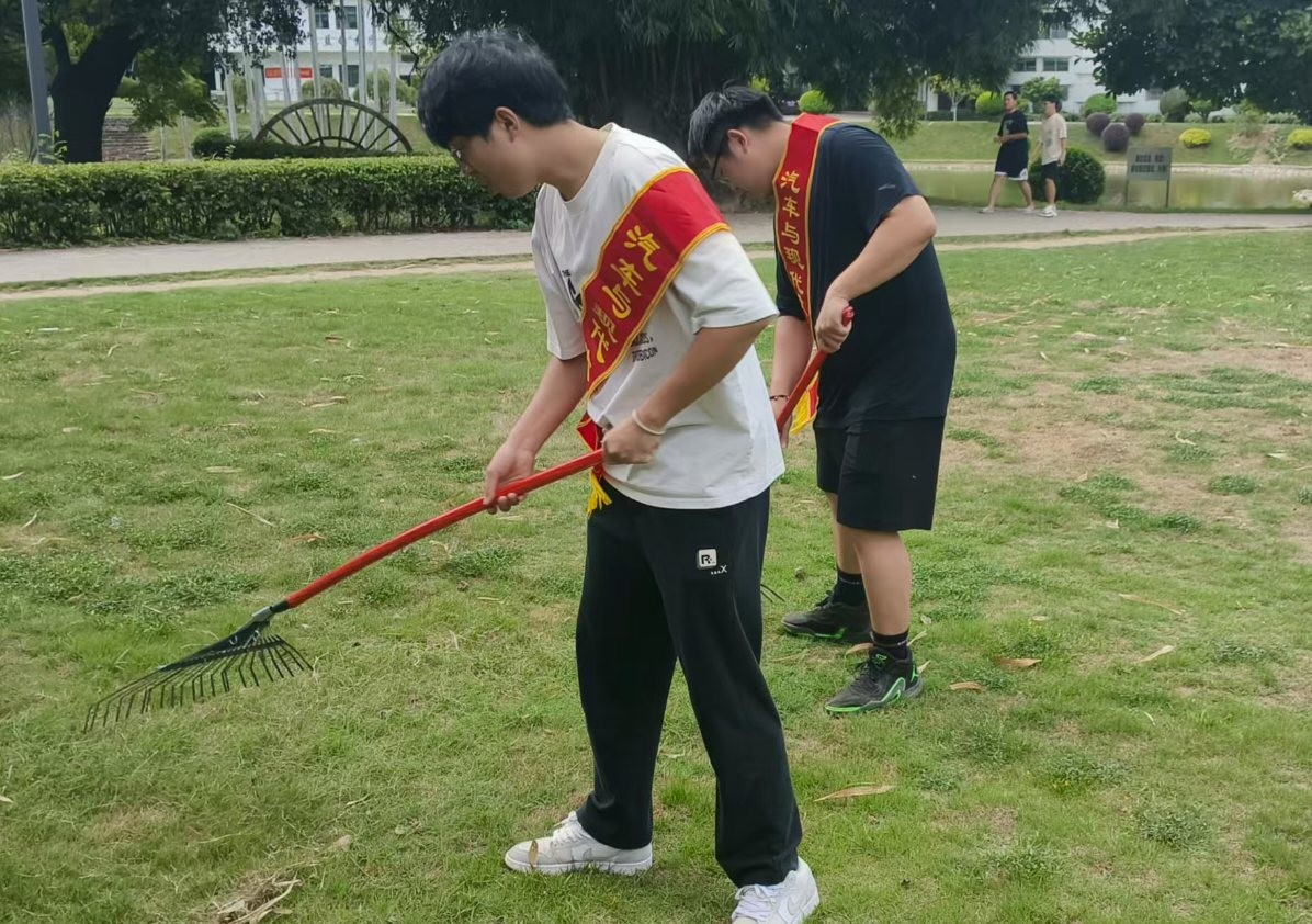 在校园的草坪、湖畔等责任区,同学们分工协作,有的手持耙子整理草地,有的俯身拔除杂草,一个个忙碌的身影成为校园里一道靓丽的风景线。黎明的新主人们身披绶带,专注地清理着责任区的每一处角落;大二的学长学姐们也纷纷拿起工具,在劳动中挥洒汗水。大家将杂草集中装袋,用实际行动为校园环境“美颜”。