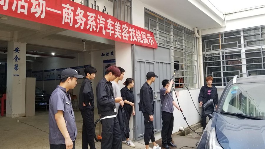 为了贯彻落实教育厅和我校有关开展职业教育活动周的精神,大力弘扬劳动光荣、技能宝贵、创造伟大的时代风尚,宣传展示技能创造美好生活以及职业教育的改革发展成果,我校商务系于5月27日上午在学校汽车综合实训中心举行汽车美容技能展示活动。