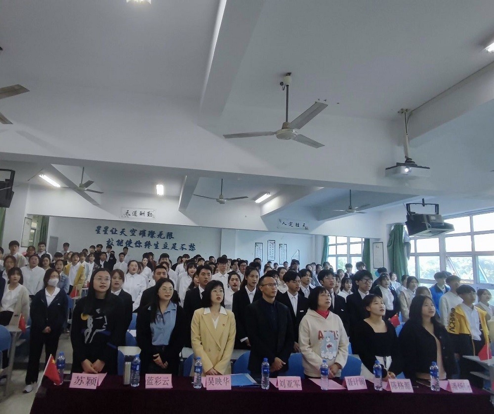 活动进行第一项,由两委一会全体学生干部共同演唱《光荣啊,中国共青团》团歌。活动第二项,由吴映华老师宣读《福州黎明职业技术学院经济管理系团总支关于任命第十四届两委一会主要学生干部的决定》。首先进行授牌的是经济管理系团总支主席团,他们分别是团总支副书记:吴秋婷、张开齐;学生会主席:黄宏鑫;学生会副主席:何婉仪;自律会主席:苏茂艺;自律会副主席:郑致鸿,阮思杰......活动第三项,由吴秋婷学姐宣读团总支学生干部名单。接下来,分别由各部部长,为其部员授牌。各部门授牌结束后,两委一会全体学生干部共同庄严宣誓,扎根基层绽放青春光彩。