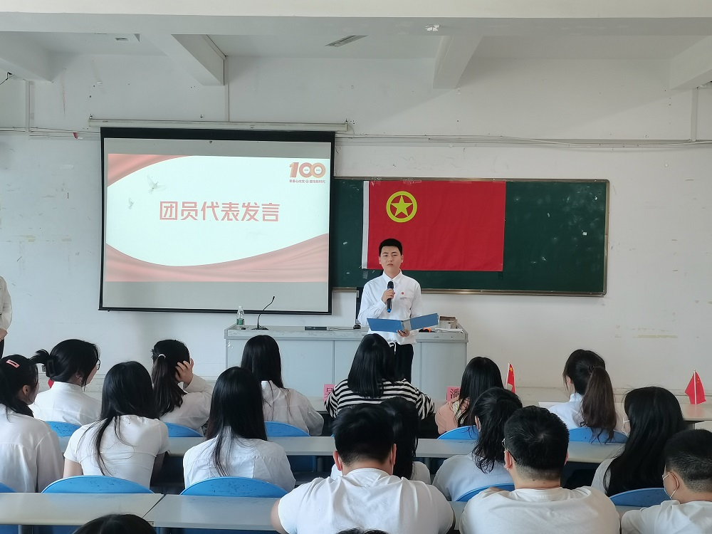 团总支书记吴映华老师在活动上,向我们讲述了百年前的今天,在中国共产党的关怀和直接领导下,迎来了中国共青团的成立,以及党领导团前进,团紧跟党奋斗的百年团史;对全体团员提出希望,新时代青年要不断加强党史、团史学习,坚定理想信念,树立远大理想,在细照笃行中不断修炼、提升自我,积极发挥模范带头作用,锻炼“筋骨”,磨砺“精神”。2022年作为中国共青团成立100周年和党二十大召开之年,身为新时代青年的我们,应不忘初心跟党走,砥砺奋进结硕果。
