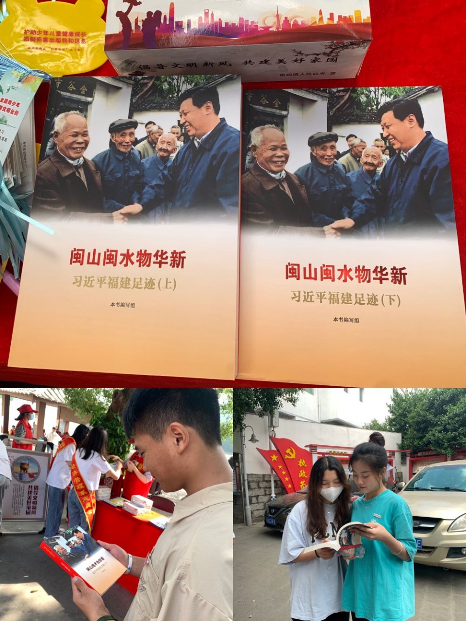 在活动现场随处可见我支部志愿者的身影,他们有搀扶着老人等待义诊的,有向群众耐心宣传科普知识等文化的,更有在现场维持秩序帮助需要帮助的群体。面对着骄阳,他们没有退缩,反而更加坚定的参与到此次宣传活动当中。在空闲时间里,他们还阅读了《闽山闽水物华新》,深刻感悟到习近平总书记的为民情怀,应当不断加强乡村振兴建设。
