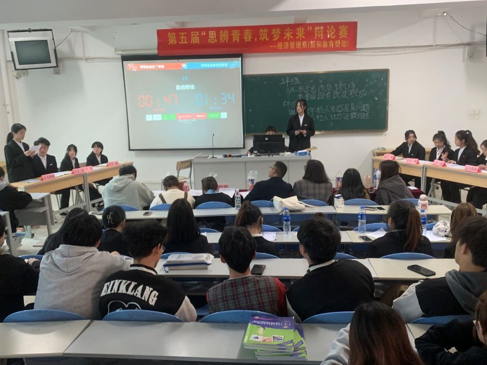 为积极引导学生养成主动探索真理的好习惯,在全系范围内形成⼀种勤于思考、敢于思辨、善于思辨和积极探索的好氛围,培养同学们的团队协作能力与开拓创新精神,3月15日,我系于综合楼227开展“思辩青春,筑梦未来”第五届大学生辩论赛决赛。