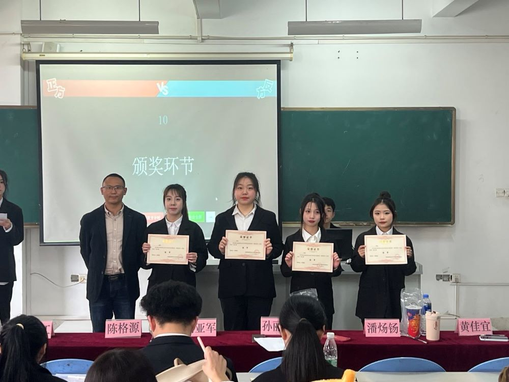 最后由我系主任刘亚军点评本场辩论赛,并为获奖队伍颁奖。他首先赞扬了选手们的临场应变能力,根据赛场上各位辩手的表现逐一进行分析,抓住双方辩手的辩题深入讨论,同时向我们传授了在打辩论赛时的技巧。