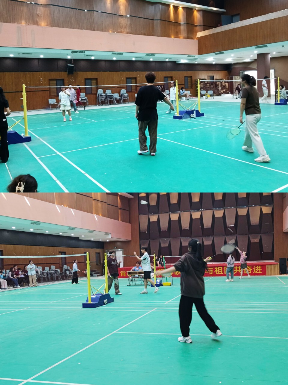 参赛的教师们也精神抖擞,顽强拼搏、奋勇争先。比赛过程中,精彩球频现,扣杀、网前吊球等羽毛球技术轮番登场。昔日气质儒雅、循循善诱的老师们变成了活力四射的运动员,尽显青春风采。