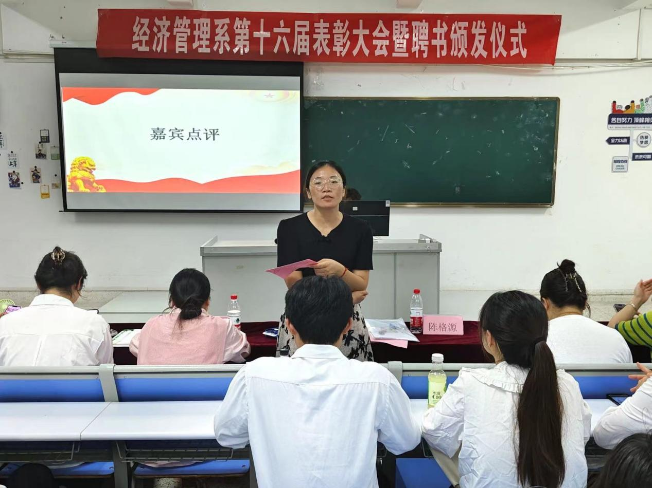 穿梭岁月章,丰收硕果满。大会在庄严的团歌声中拉开帷幕,经济管理系于6月23日在综合楼227正式召开表彰大会暨聘书颁发仪式。出席本次会议的领导老师有经济管理系党支部书记孙丽平老师、以及系部各辅导员。旨在通过此次的表彰大会总结本学年学生党团组织工作以及各单位所展现的能力,积极改进工作中的不足之处,并对未来的工作做出合理的规划。让学生党团组织在以后的工作中能再接再厉,创造新的辉煌。