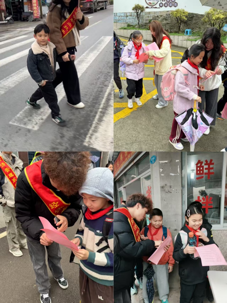 随着下课铃响,孩子们争先恐后地冲出大门,面对上下学高峰时段人流交织的情况,志愿者们通过哨声、手势指引和微笑劝导,让原本拥挤的校门口变得井然有序。令人惊喜的是,志愿服务的“涟漪效应”正在显现。有学校门口的店铺老板也协助着志愿者们提醒乱穿马路的同学;门口的小吃摊主也主动腾出了空间供学生排队过马路…