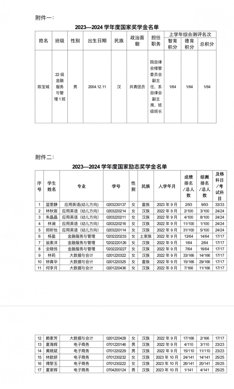 经济管理系2023-2024学年国家奖学金和国家励志奖学金拟推荐名单公示