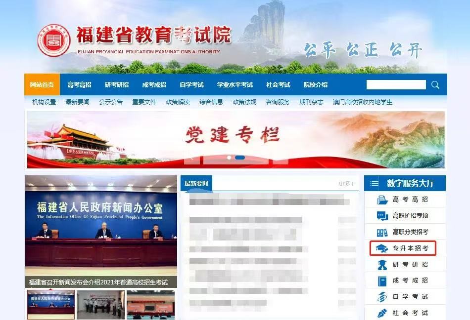 在网站首页找到“福建省普通高校专升本考试报名系统”入口,点击进入。