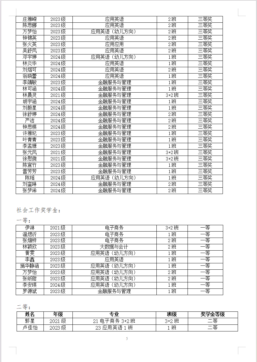 关于 2024-2025 学年“学业奖学⾦””社会⼯作奖学⾦“的公示