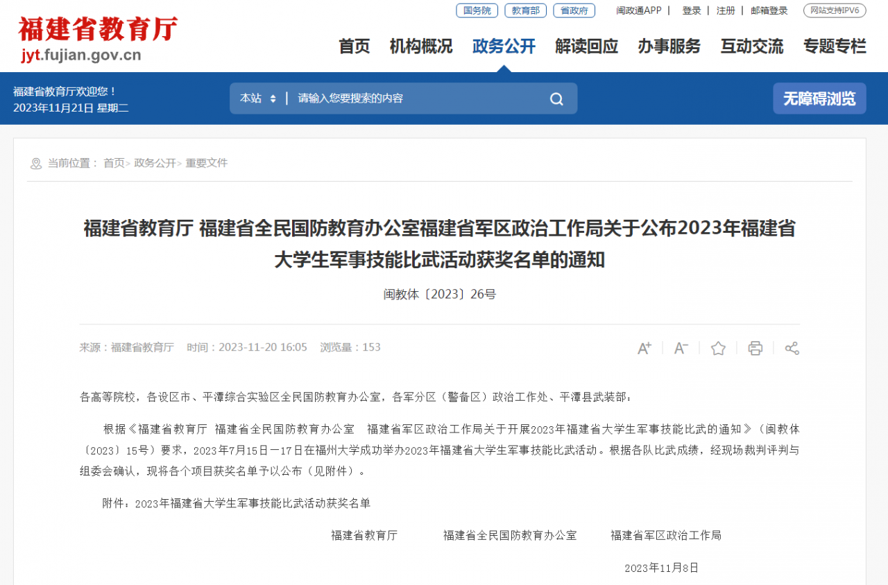 喜讯!我院代表队在2023年福建省大学生军事技能比武活动中喜获嘉绩!