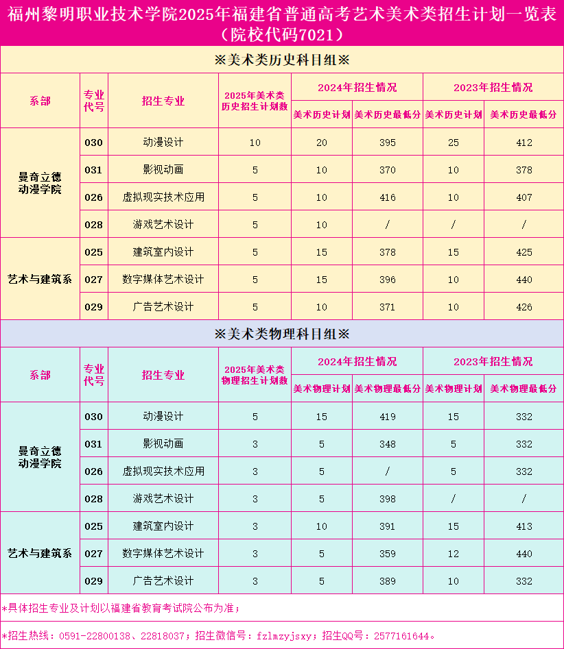 福州黎明职业技术学院2025年福建省普通高考招生计划一览表(院校代码7021)