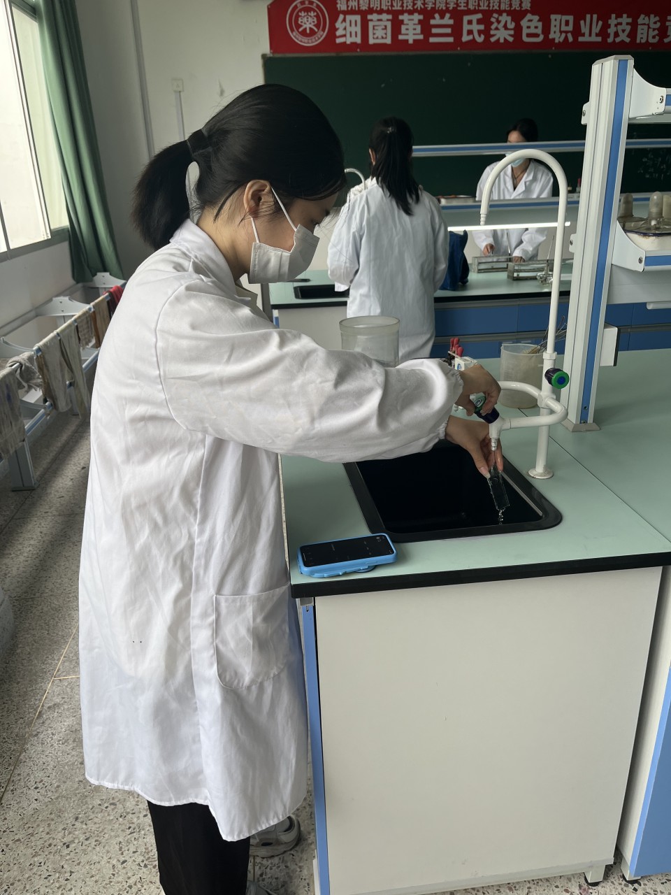 2023年5月16日,我们迎来了福州黎明职业技术学院2023年学生职业技能大赛。药学系2021级食品营养与检测、2022级药品经营与管理和2021级健康管理一共16个同学参加“细菌的革兰氏染色”项目。本项目从早上9点在新教学楼第三实验室微生物实验室准时开始,一共分成4组,每组比赛时间是20分钟。“细菌的革兰氏染色”的步骤包括:准备→接种环灭菌→取菌涂片→干燥→固定→结晶紫初染1min→水洗→碘液媒染1min→水洗→酒精脱色30s→水洗→番红复染1~2min→水洗→干燥→镜检→载玻片的摆放→观察操作→显微镜清洗→结果报告。在制片过程中,学生需要做到严格无菌操作。实验过程中,需要注意的细节的点比较多,同学们都在尽自己的所能,做好实验的每个步骤,不仅赛出了风格,也赛出了水平。